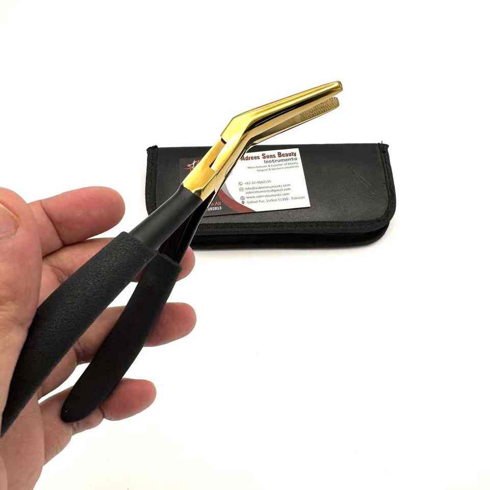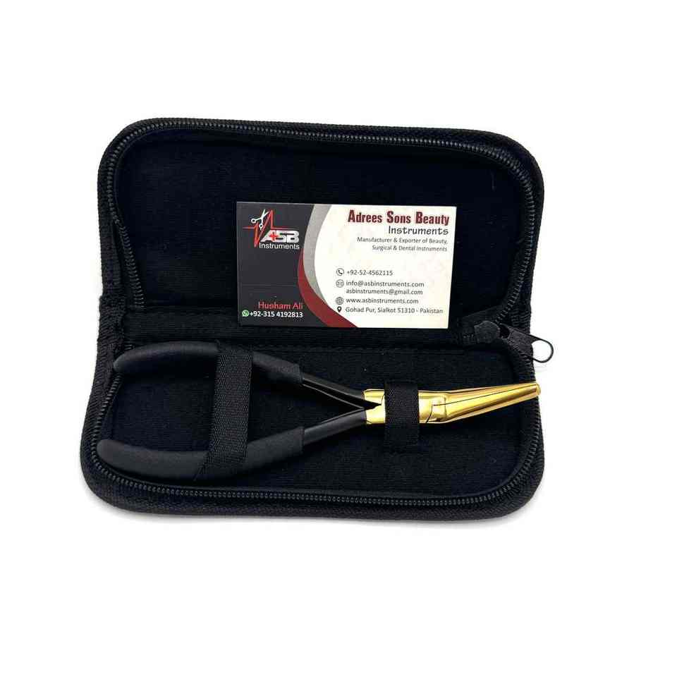 Flat Nose Hair Extension Pliers Custom Logo Black Gold Stainless Steel Micro-beads Pressing Curved Hair Extension Tools