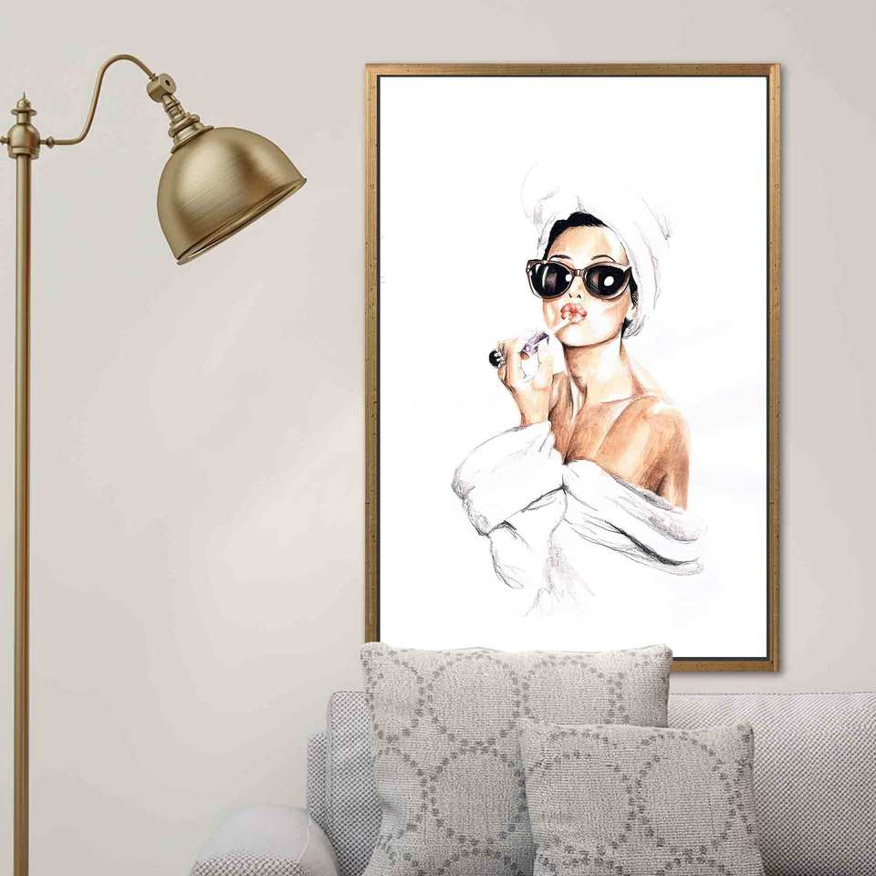 Flat Printed Canvas Artwork - Vogue Audrey Hepburn Wall Decor,Gold Framed