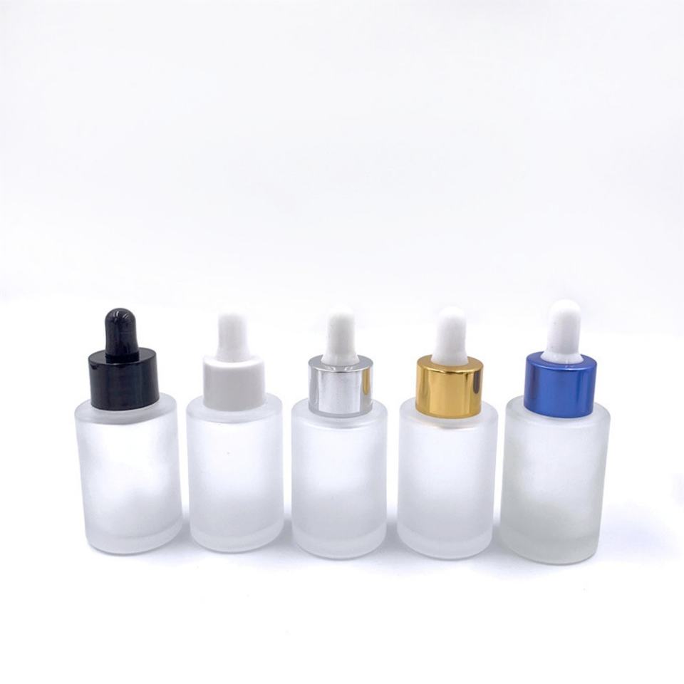 Flat Shoulder 30ml 1oz Bamboo Cap Glass Serum Bottle for Skin Care Dropshipping MOQ 100pcs
