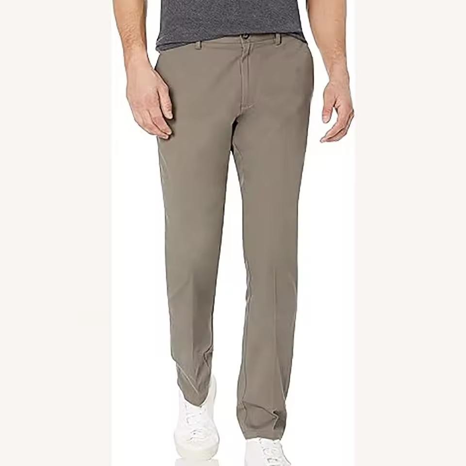 Flat Front Casual Men's Chino Pants with Regular Fit Breathable Fabric Wrinkle Resistant Midweight and Elastic Waist