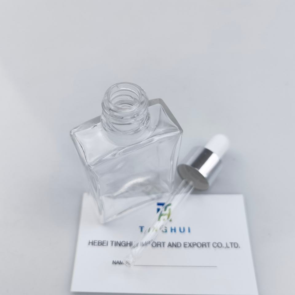 Flat square Transparent Hair Oil Glass Dropper Bottle 30ml 50ml 100ml for Serum Essential Oil Perfume