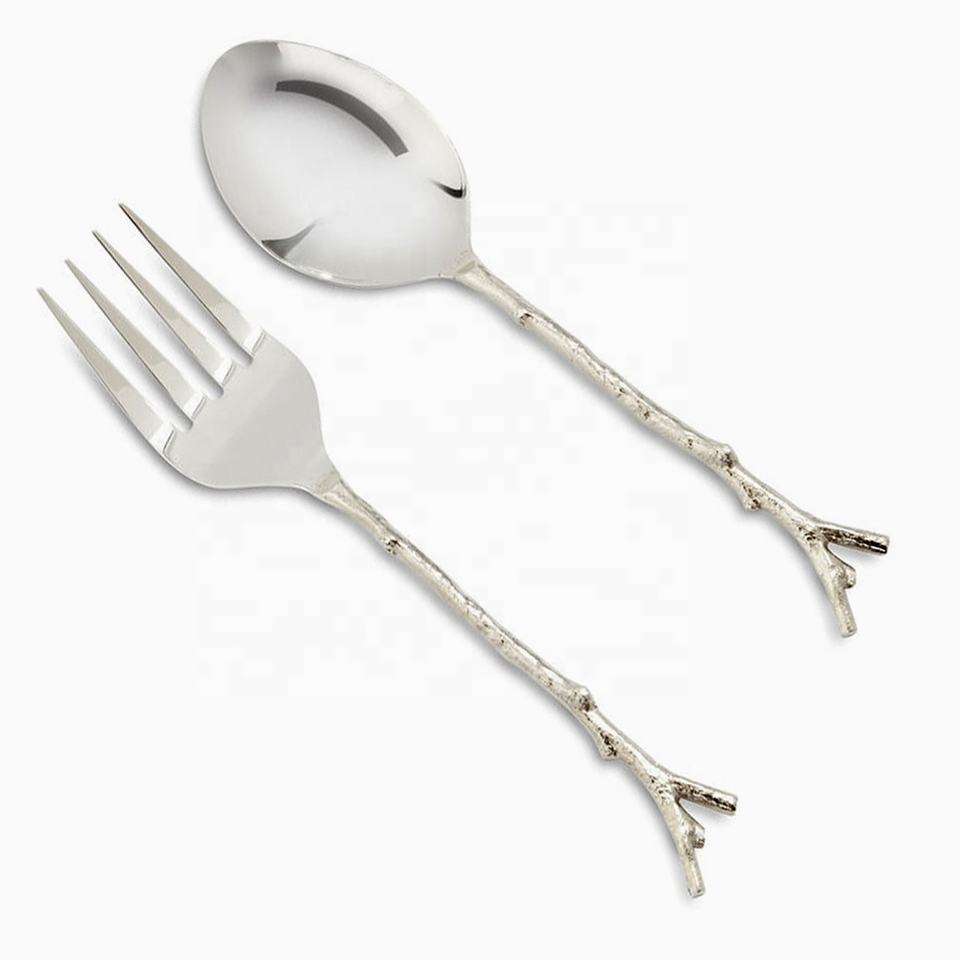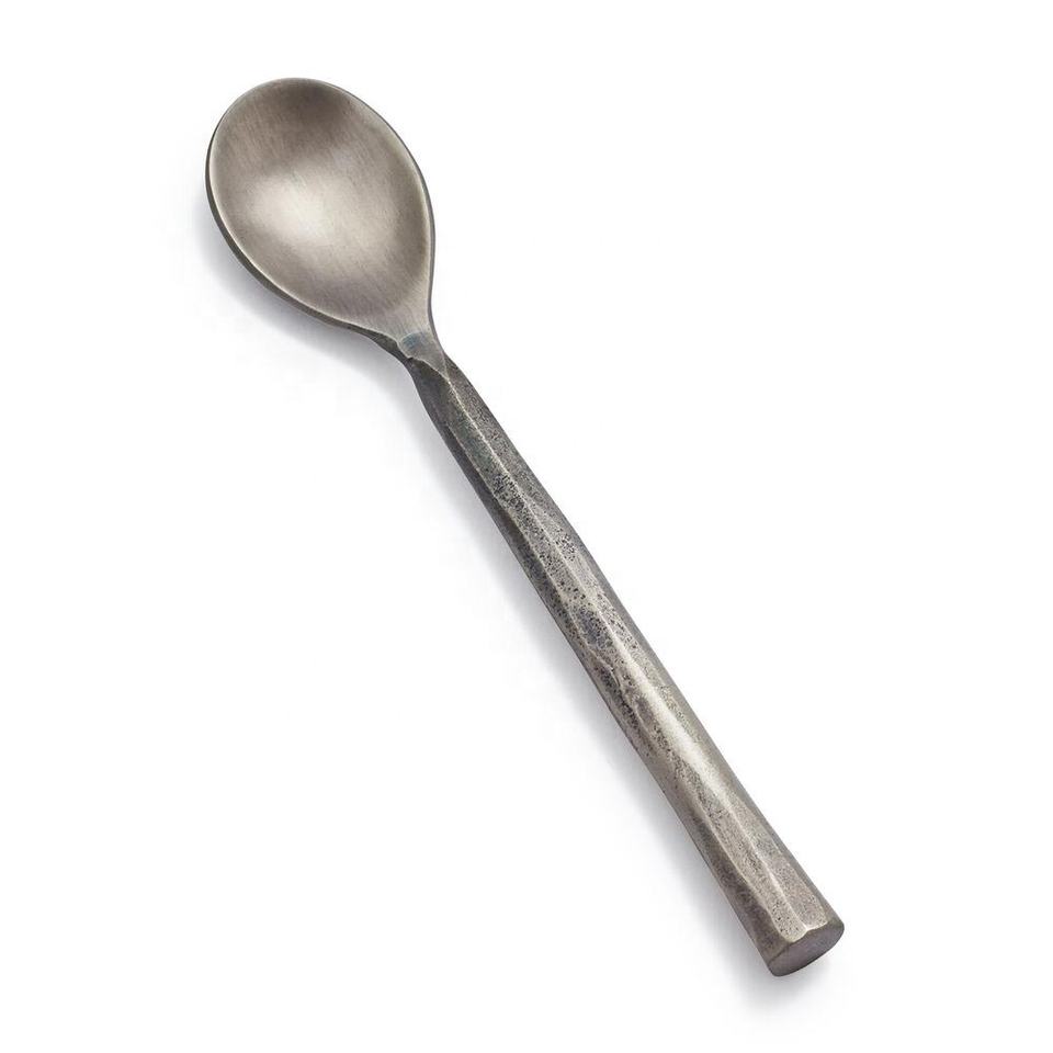 Flatware Set Round Beaten Wrought Handle Baby Spoon Long Handle Spoon Black Gold Cutlery Hotel Spoon Fork Knife Gold Cutlery