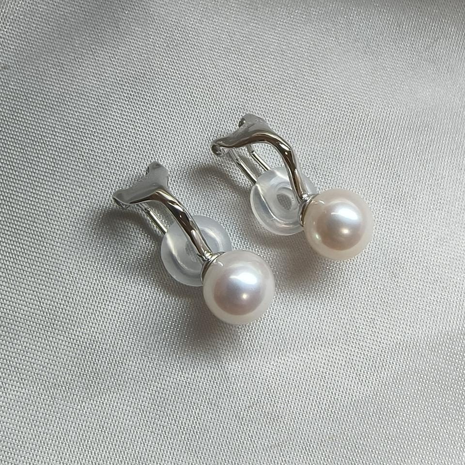 Flawless Round Freshwater Pearls Good Quality S925 Silver Ear Clip Earrings with Silicone Ear Hole Rings Fine Clip-on Product