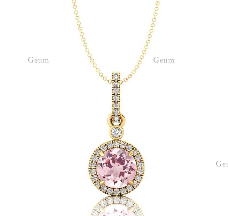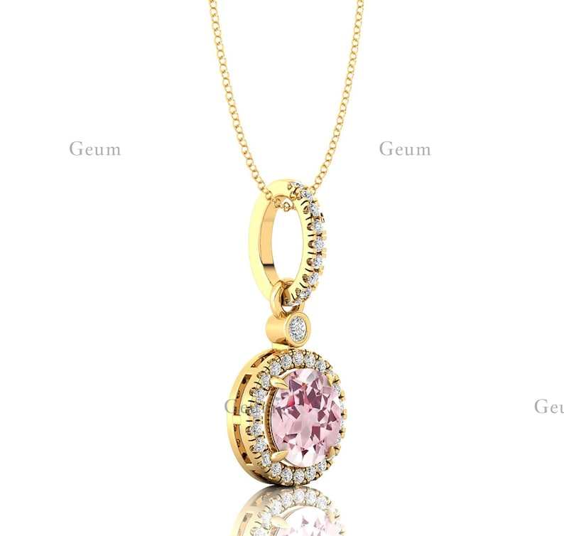 Flawlessly Designed Lab Pink Morganite Gemstone Charms Pendant Necklace in 14K Solid Gold With IGI Certified Genuine Diamond