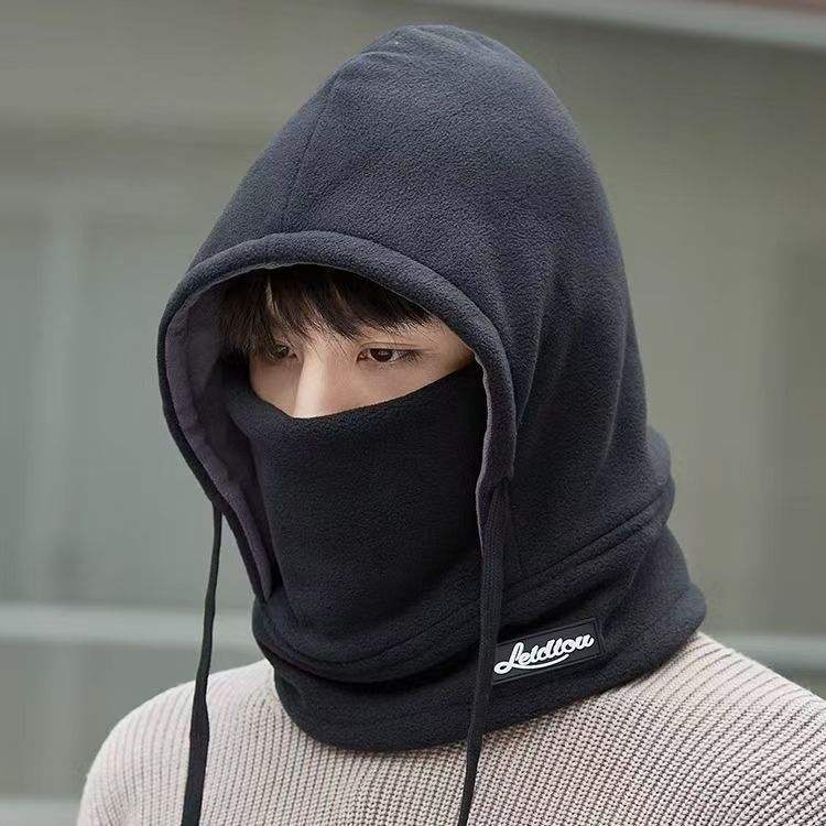 Fleece Cycling Cap Neck Protector Windproof Warm Unisex Outdoor Hat Solid Color Foldable Polyester