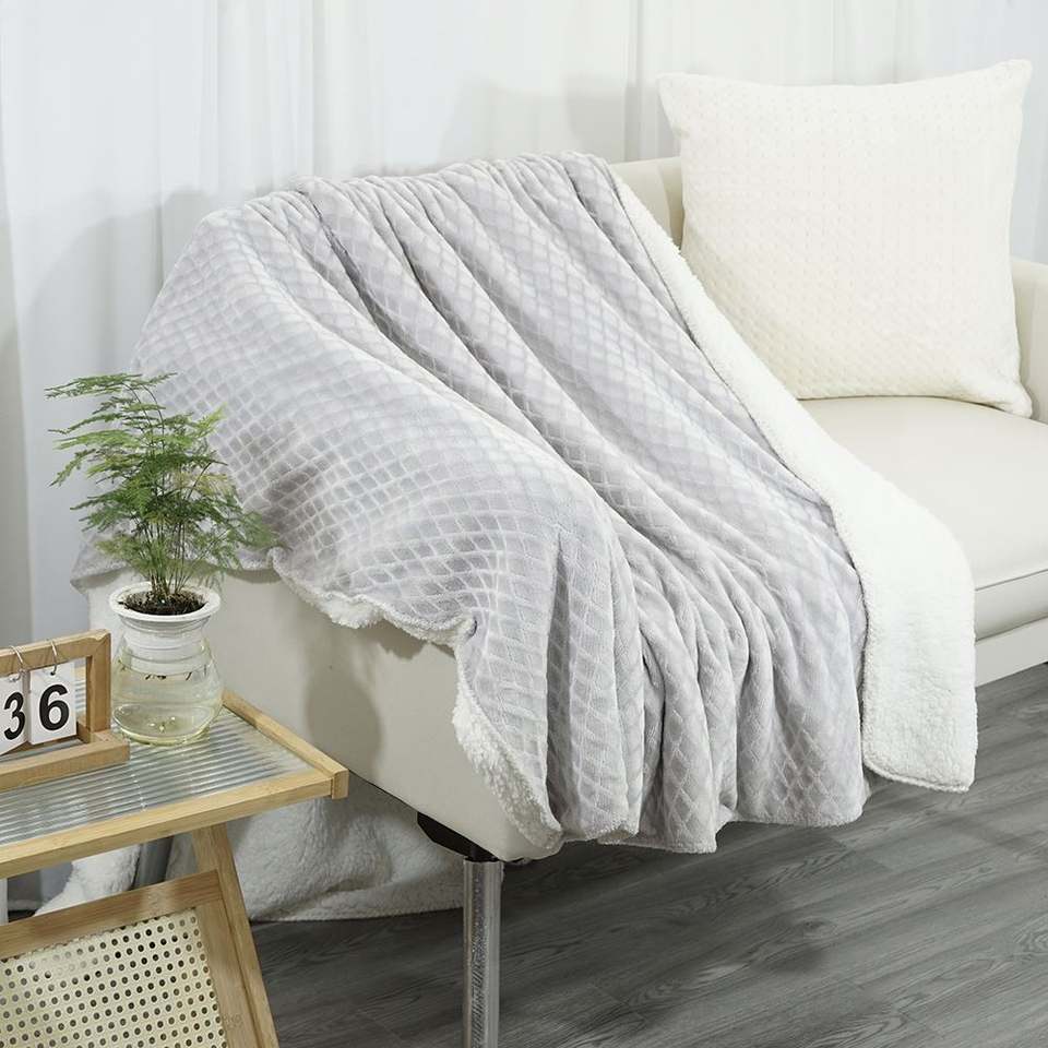 Fleece Sherpa Throw Blanket for Couch, Sofa, Soft, Cozy, Fluffy, Warm, Fuzzy Lightweight, Luxury Reversible Gray Plush Throw