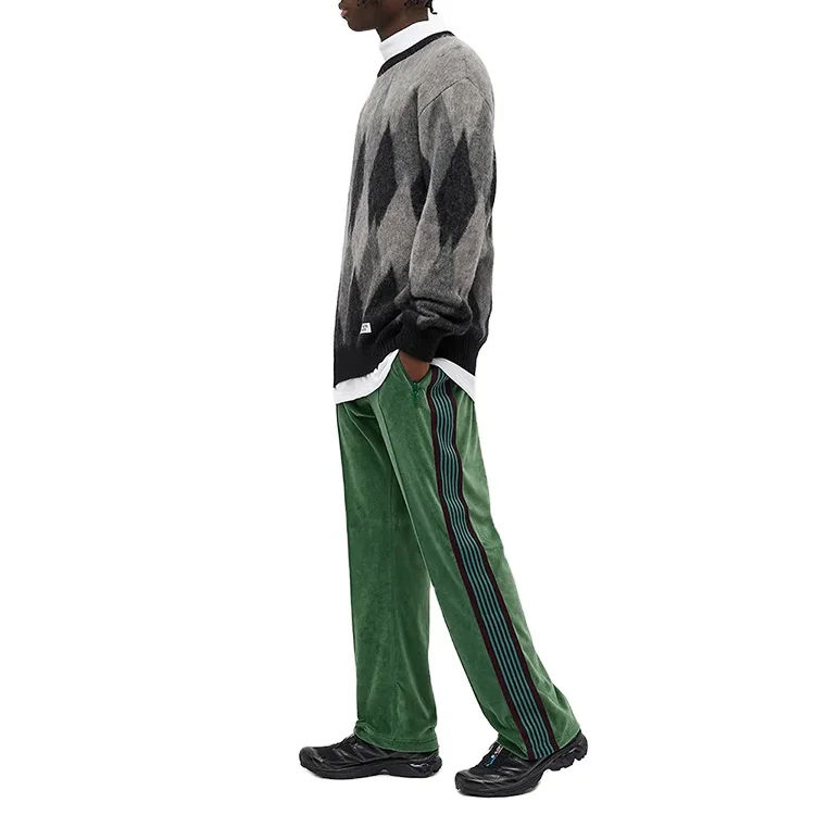 Fleece Track Pants Men Trousers Custom 2 Side Pockets Side Striped Drawstring Waist Wholesale Washed Straight Leg Men Joggers