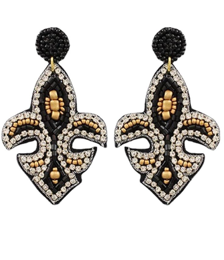 Fleur De Lis Black and Gold Seed Bead Dangle Earrings Seed Beaded Embroidery Earrings Mardi Gras Seed Beads Earrings
