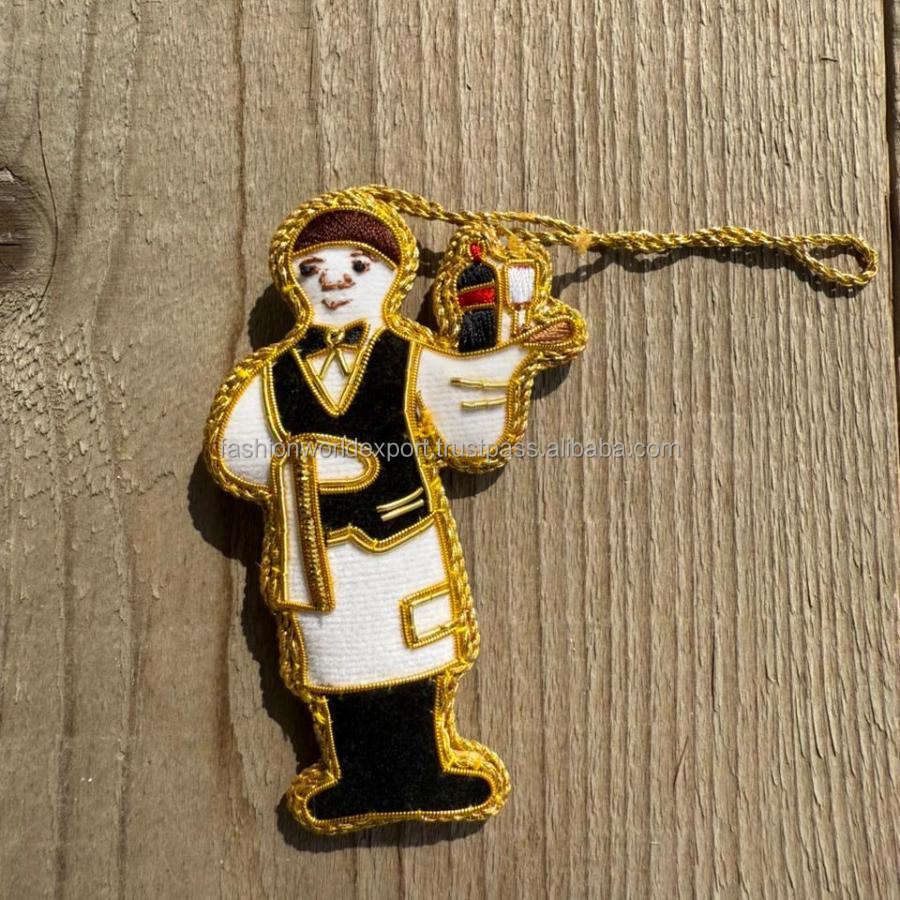 Fleur-de-Lis Hanging Ornament Blue Velvet with Gold Embroidery Traditional Decorative Wall or Tree Hanging French Symbol design