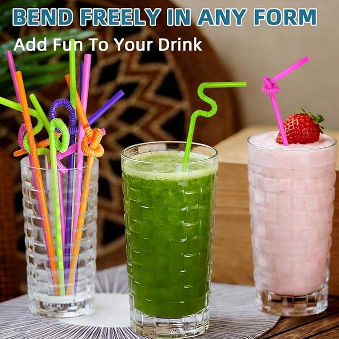 Flexible Bendy Drinking Straws BPA Free & Eco-Friendly Biodegradable Disposable Camping Straws in Assorted Colors