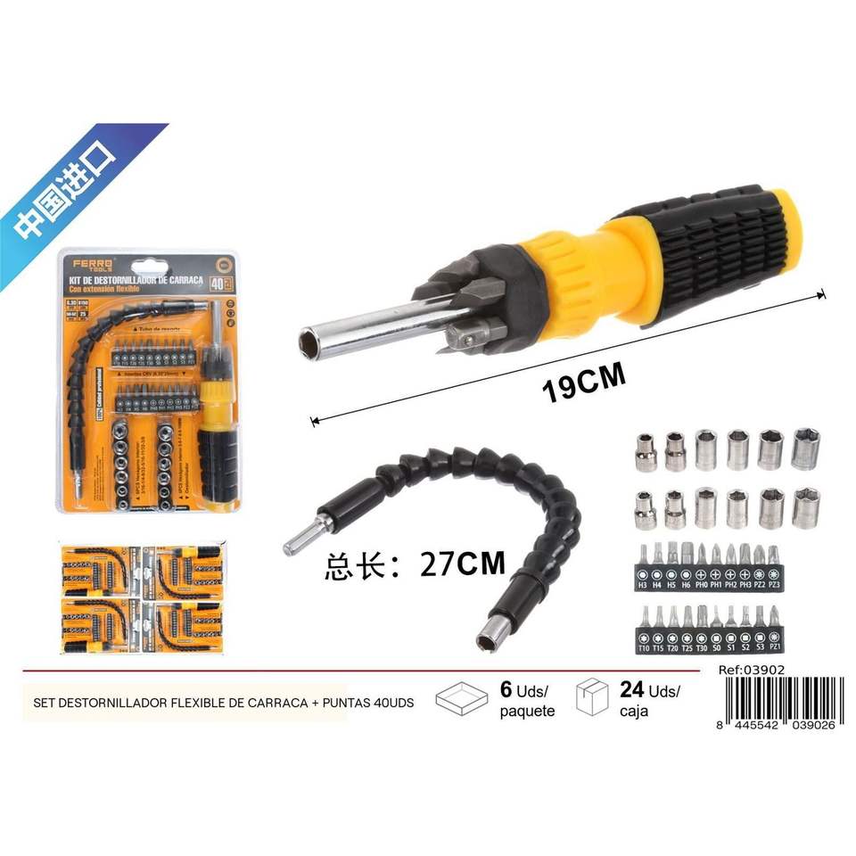 Flexible Ratchet Screwdriver Set with 40 Bits Computer Tool Kit for Household Use Electric Wrench Included Case Package
