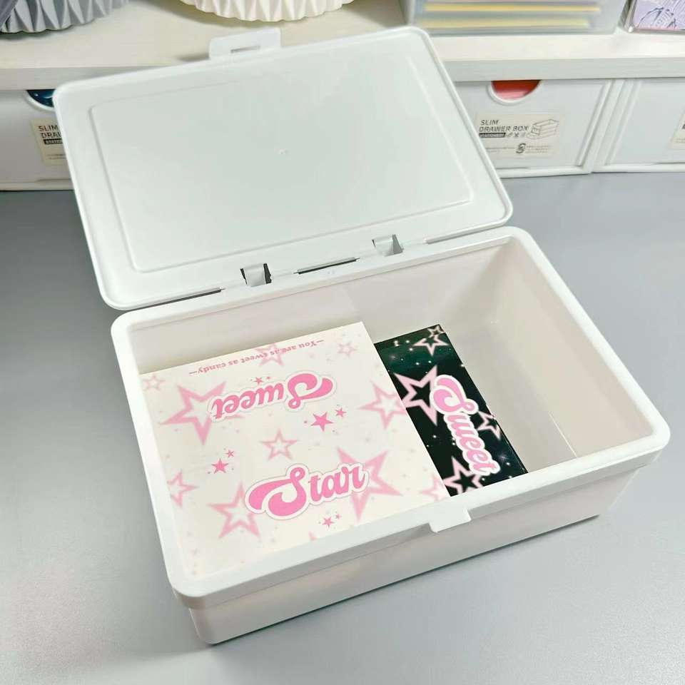 Flip Top Storage Box Rectangle Covered Dustproof For Cards Journals Student Organizers Desktop Drawer