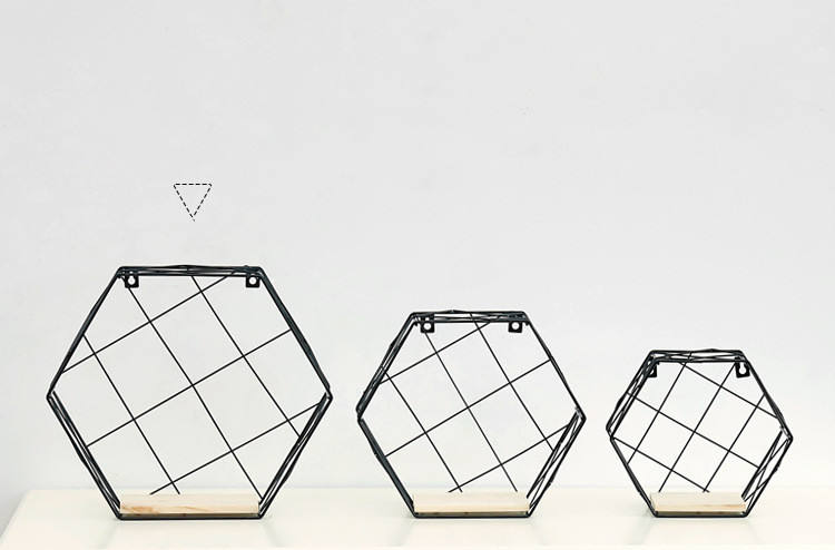 Floating Shelves Hexagon Wall Mounted Metal & Rustic Wood Storage Shelf for Picture Frames