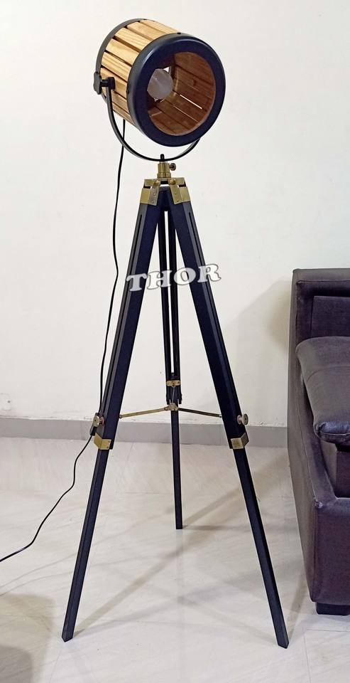 Floor Lamp for Living Room Adjustable Height Tripod Floor Lamp Black Polished Bedroom Office Home Decoration