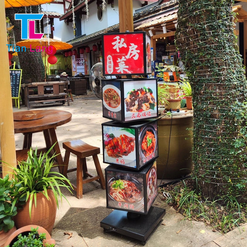 Floor Led Advertisement Sign Menu Poster Frame Box Light Acrylic Iron Square Waterproof Automatic Rotating Light Box