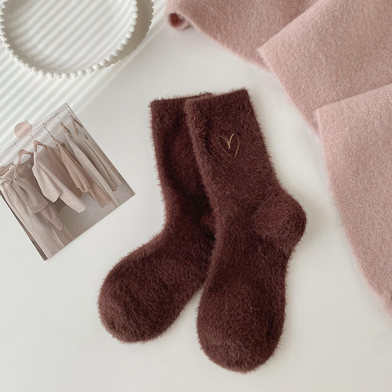 Floor Socks Winter Thickened Embroidered Love Heart High Comfortable Fluffy Knitted Sleeping Socks Coral Fleece Thick Warm Socks