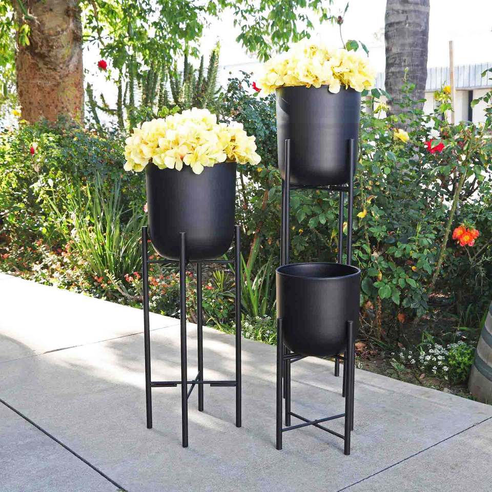 Floor Standing Golden Planter With Stand for Indoor and Outdoor Newest Design Round Floral Gold Planters for Home & Hotels