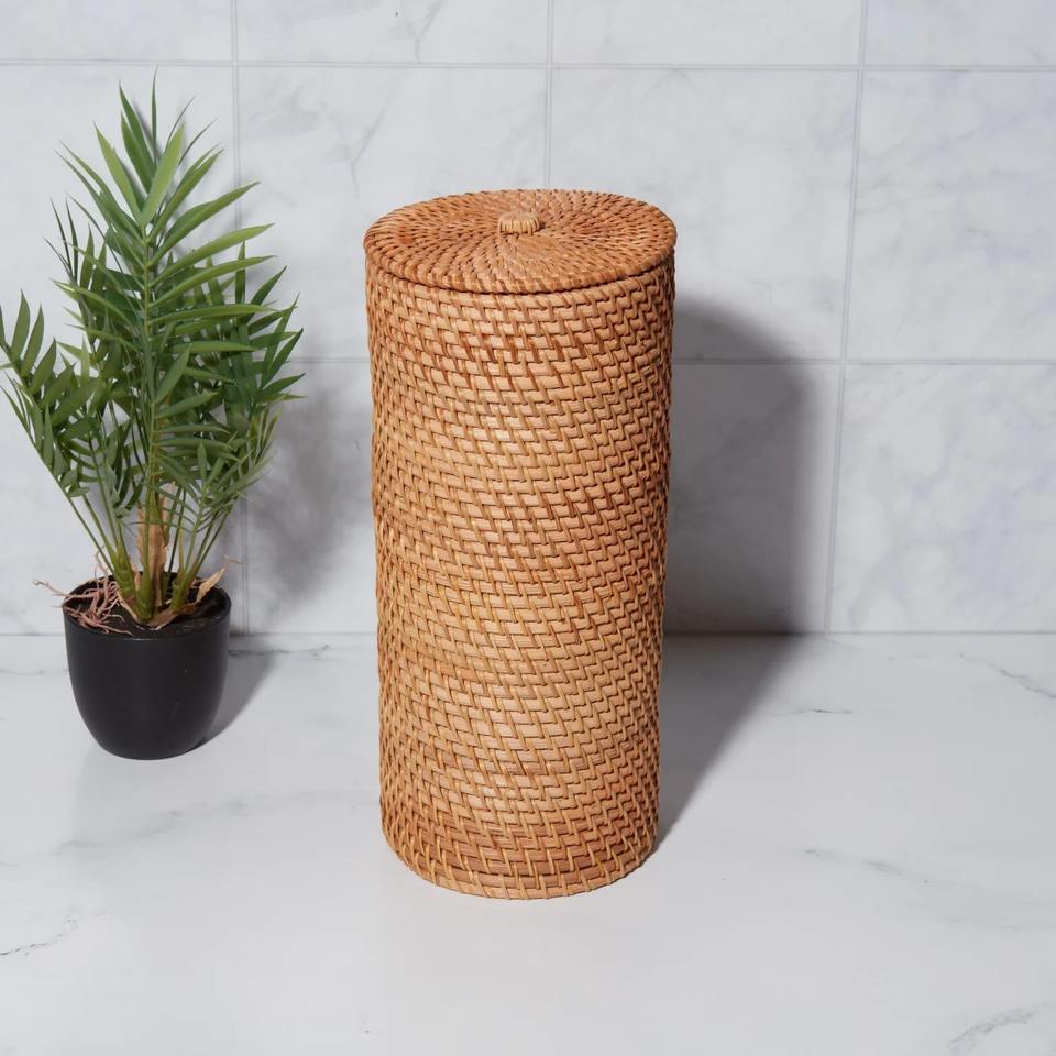 Name:Floor toilet paper holder with lid Size: D7 x H12 inch