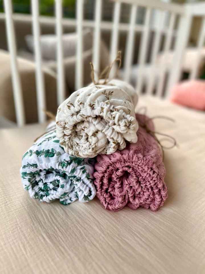 Organic Muslin Floral Baby Crib Sheet Set Custom Size Nursery Fitted Bassinet Bedding Cotton Botanical Print for Kids' Bedding
