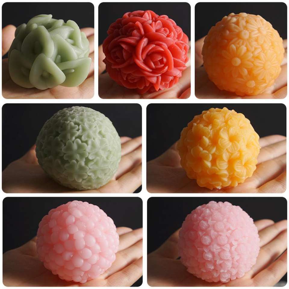 Floral Ball Candle Egg Floral Ball Mathilian Little Daisy Four Leaf Clover Rose Floral Ball Shaped Candle Silicone Mold