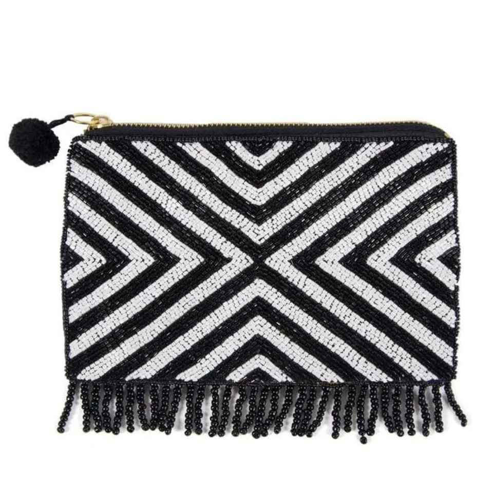 Floral Beaded Coin Purse White Glass Seed Beads Zipper Pouch Blue Flower Design Little Wallet Ladies Card Holder Mini Storage
