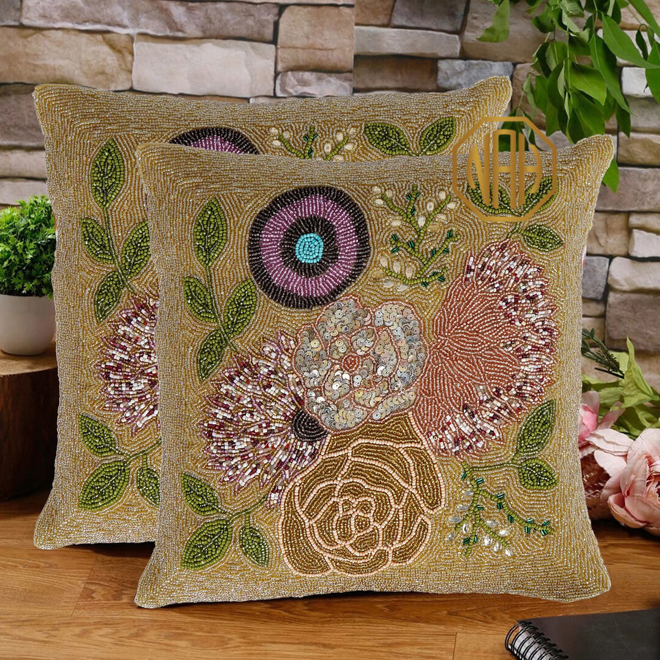 Floral Beaded Cushion Covers Rose Gold Embroidery Handmade Sofa Pillow Cases Home Decor Gift Factory Direct Wholesale Export