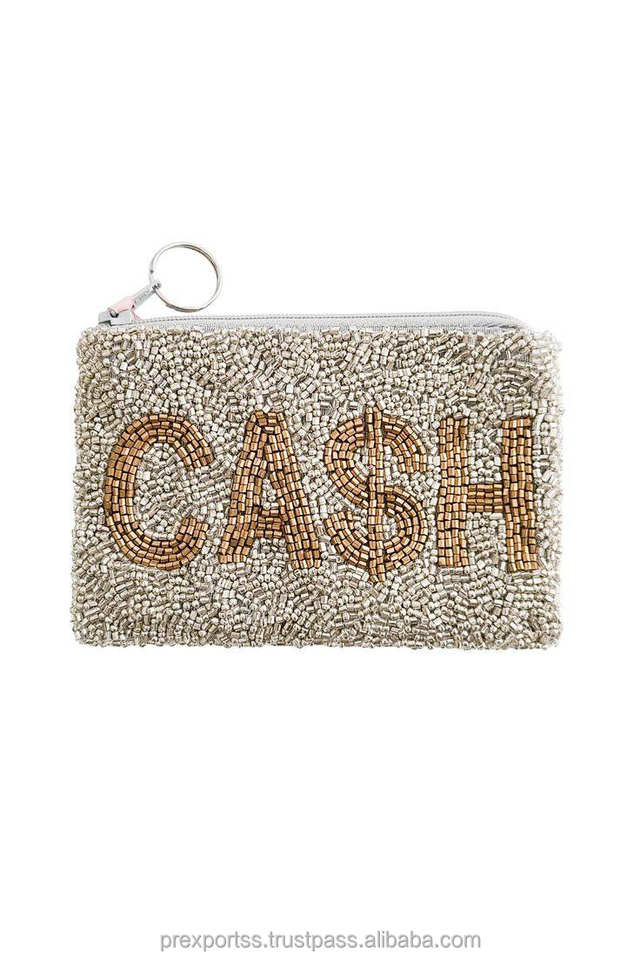 Floral Beaded Women's Clutch Pouch Flower Design Handmade Embroidered Zip Large Capacity Soft Eco-Friendly Durable Fashion