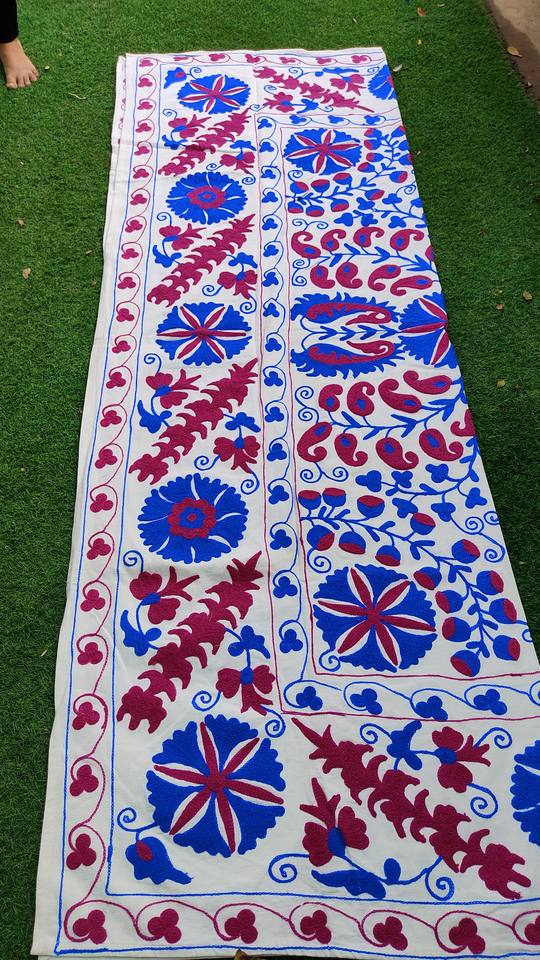 Traditional Uzbek Suzani Embroidered Bed Sheet