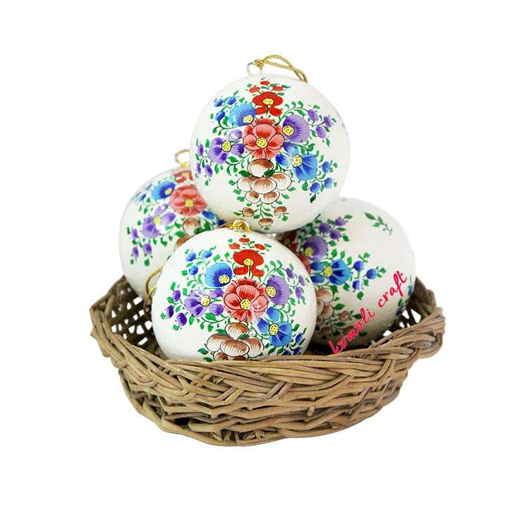 Floral Black Heart Wooden Christmas Ornament Hand Painted Paper Mache Decoration for Tree Hanging, Holiday Gift, or Home Decor