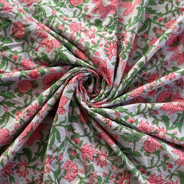 Floral Block Print Cotton Cambric 60X60 Running Fabric Traditional Jaipuri Print Cotton Fabric
