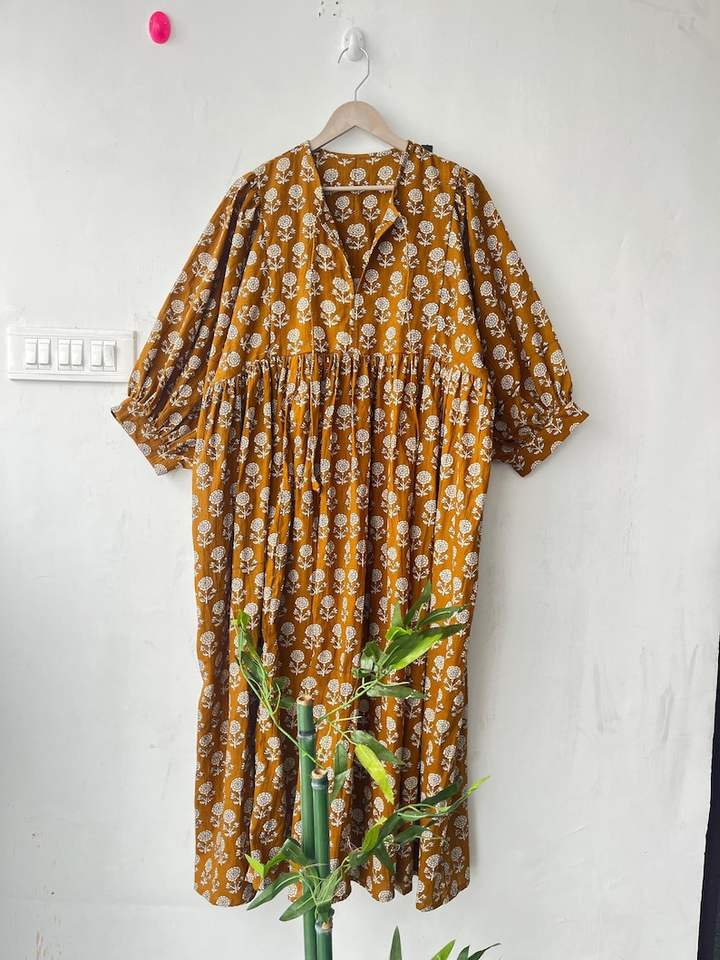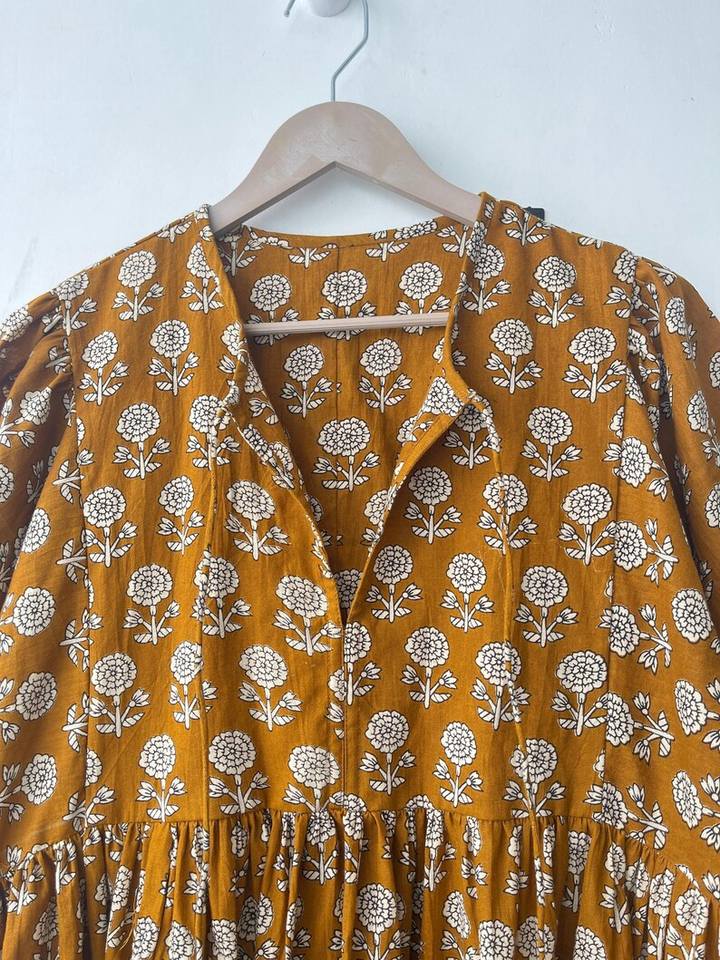 Floral Block Print Cotton Dress Soft Summer Tunic Handmade Indian Cotton Dress Lightweight Floral Printed Kurti For Women
