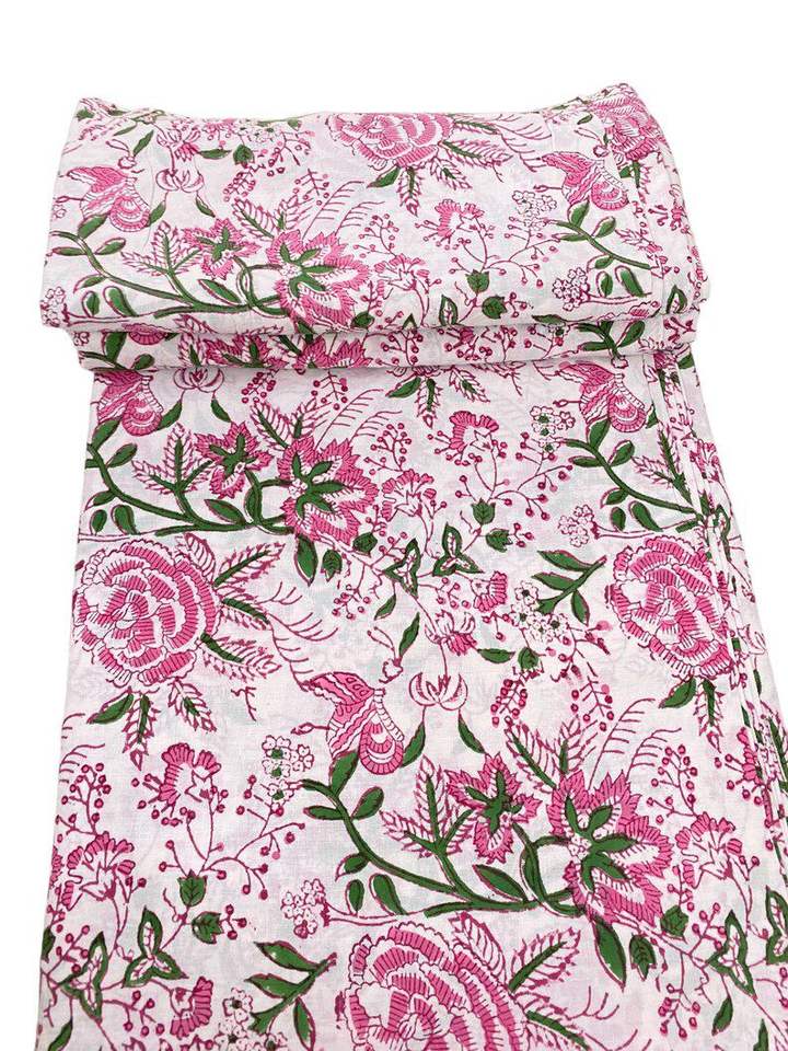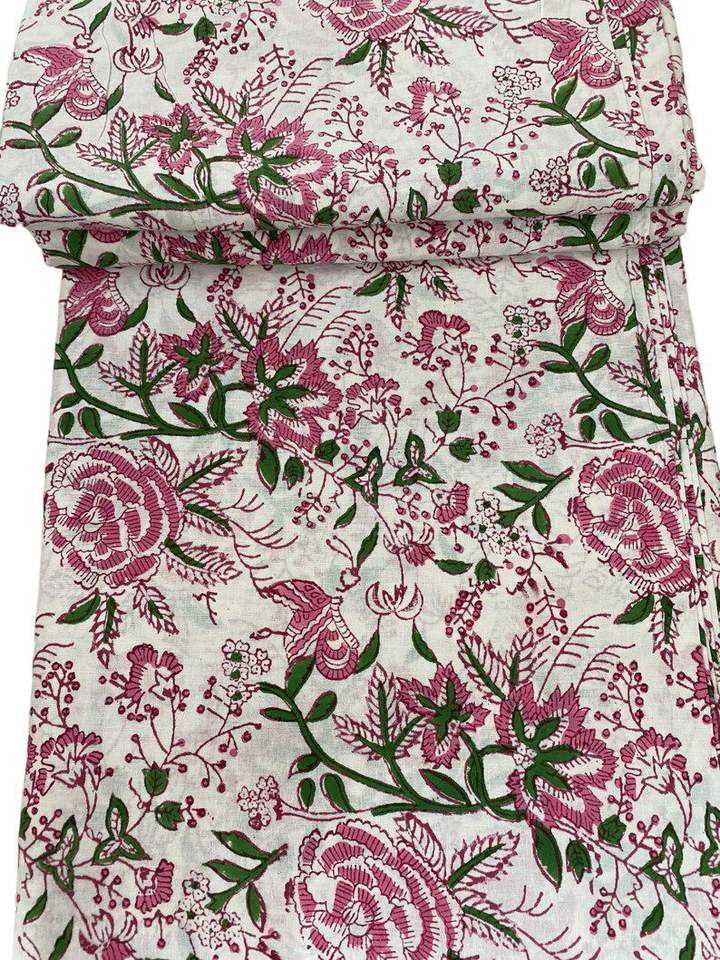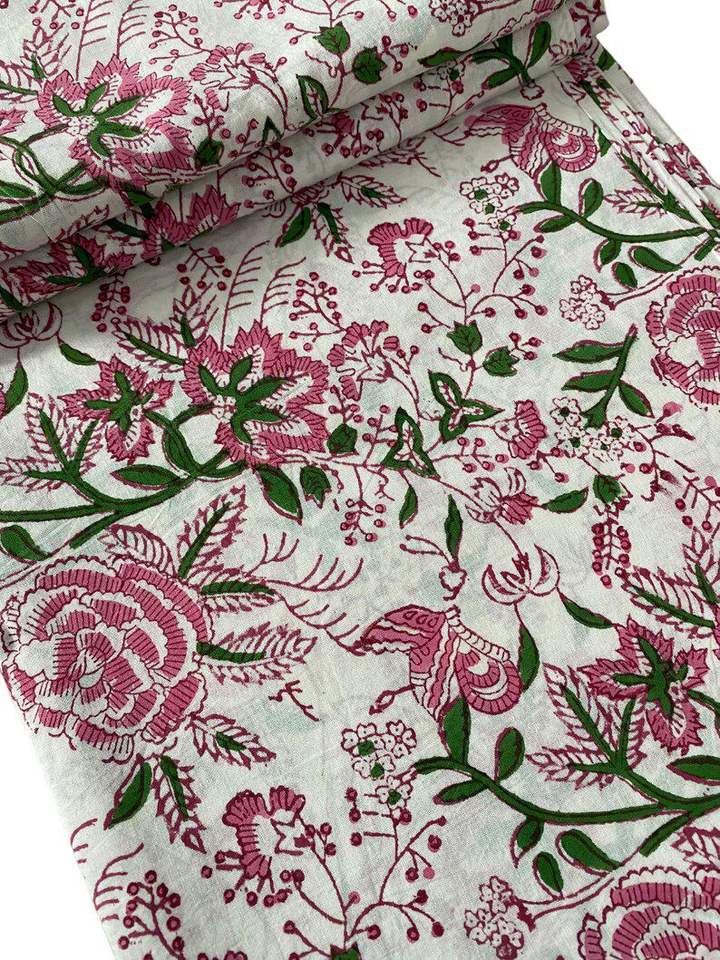 Women's Floral Block Print Voile Cotton Fabric Lightweight Loose Swing Dressmaking & Crafting Handmade Knitted Technics