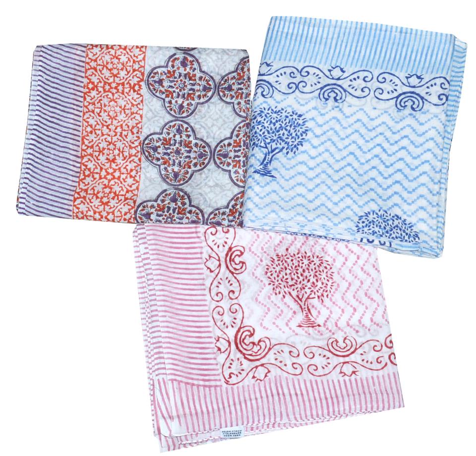 Floral Block Printed Indian Hand Made Block Printed Indian 100% Cotton Beach Cover Ups Pareos Large Long Beach wrap Cotton Scarf