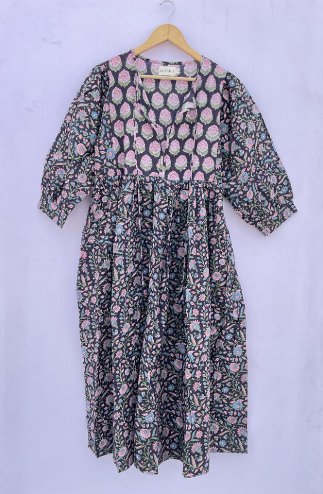 Floral Bohemian Cotton Dress for Women Handmade Midi Dress Casual Style Perfect Gift for Her 100% Cotton