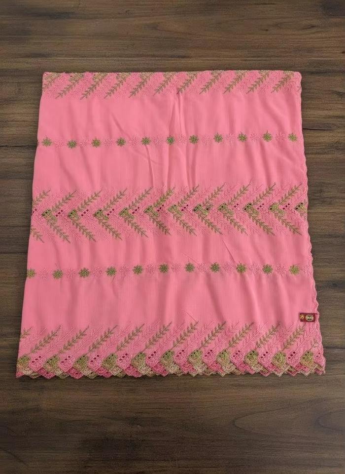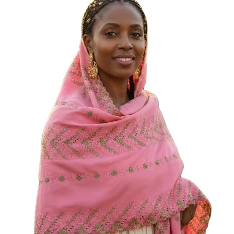 Floral Breathable Premium White Gold Voile Fabric Fine Cotton Lace Rhinestone Shawl for African Middle East Traditional Dress