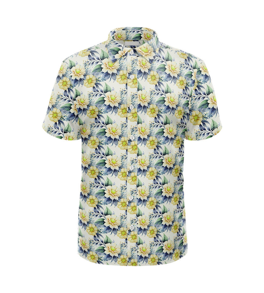 Floral Button Up Shirt Men for Golf Course, Casual Wear Sublimation Print Polyester Men's T-shirts Clothing Wholesale Vietnam