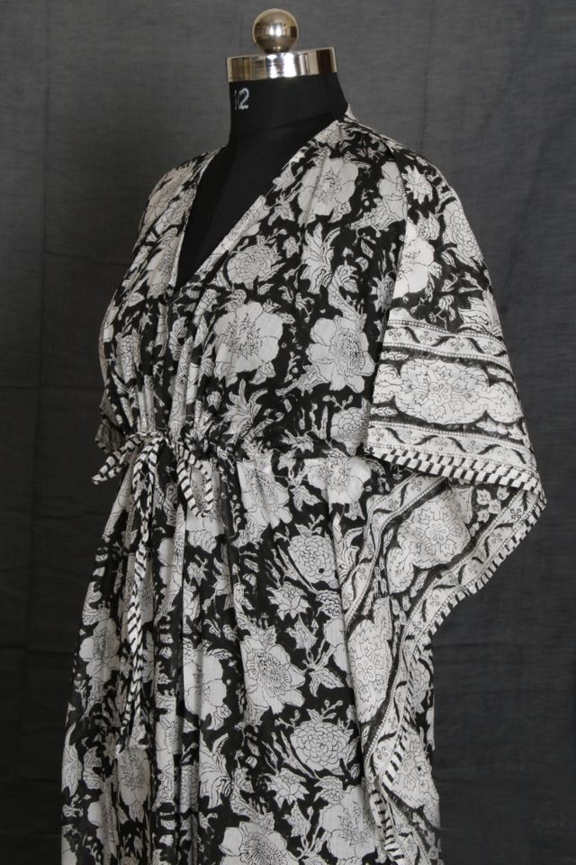 Floral Cotton Kaftan Plus Size Women Dress Long Caftan Dress Beach Cover up Flower Hand Block Print Sleepwear Maxi