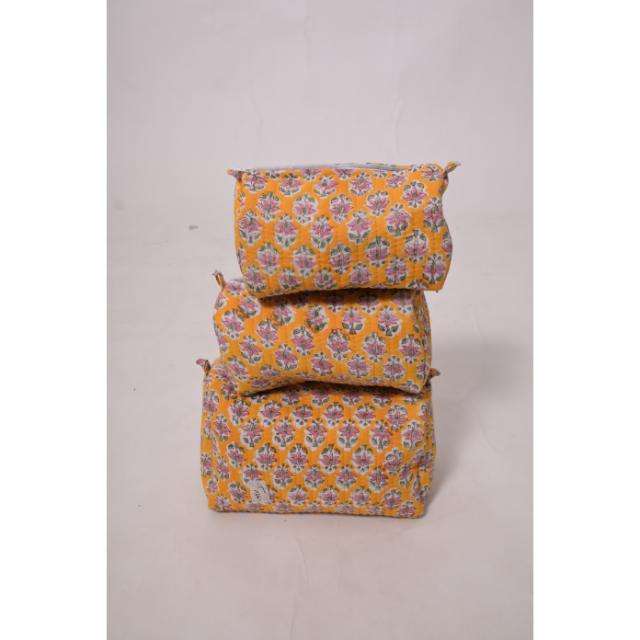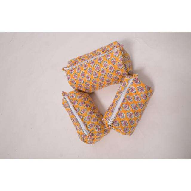 Floral Cotton Makeup Bag, Cute Cosmetic Pouch, Zipper Storage Bag, Travel Makeup Organizer