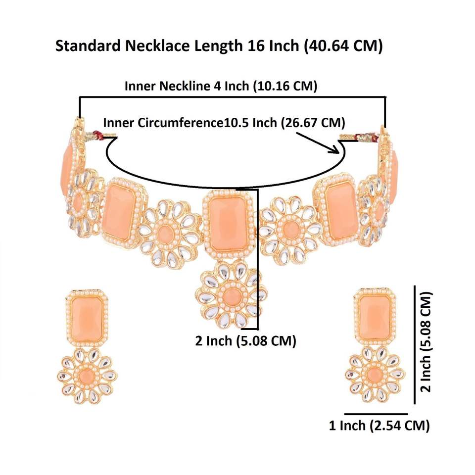 Floral Crystal Kundan Bridal Choker Necklace Jewelry for Women Indian Jewellery Manufactures, Peach Color