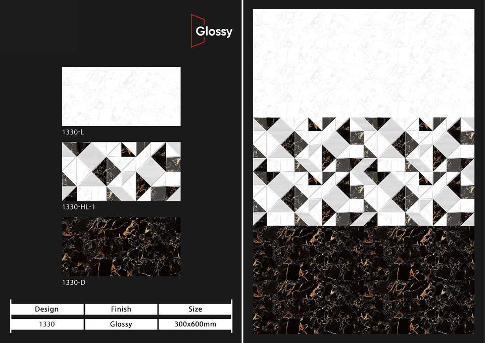 Floral Design 300x600mm Ceramic Wall Tiles Adhesive Interior Tiles for Hotel/Villa Bathroom and Kitchen Walls Accent Tiles