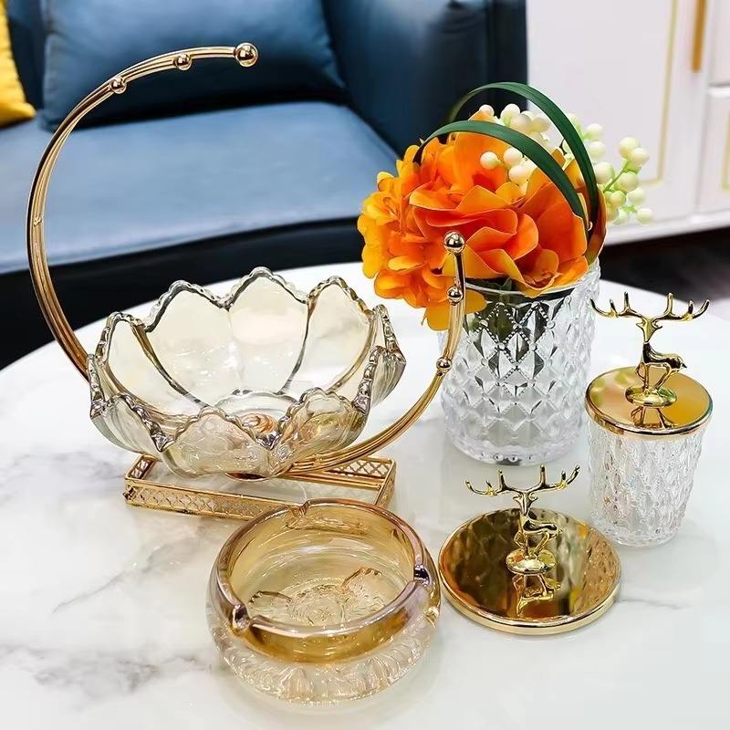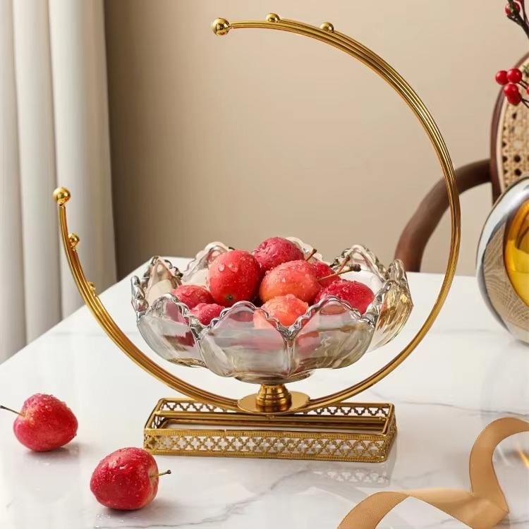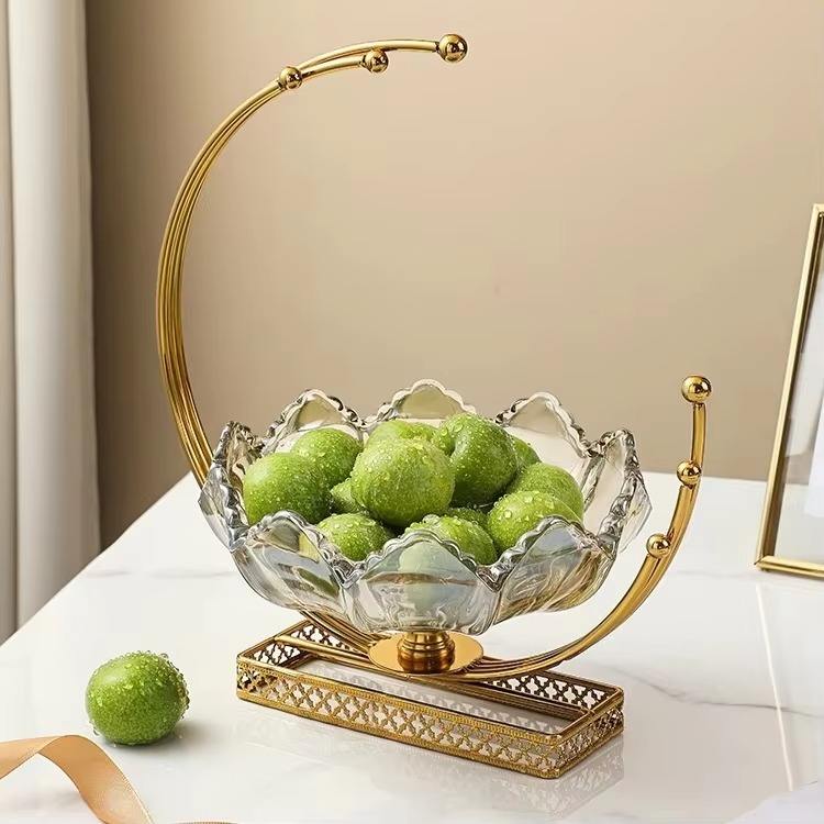 Floral Design Glass Decorative Bowl with Elegant Moon Shaped Stand Stylish Table Centerpiece for Home Kitchen and Living Room