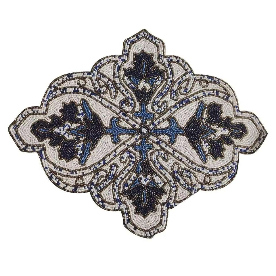 Floral Designs Indian Handmade Beaded Glass Runner Mats Pads and Coasters for Wedding and Christmas Party Table Decor