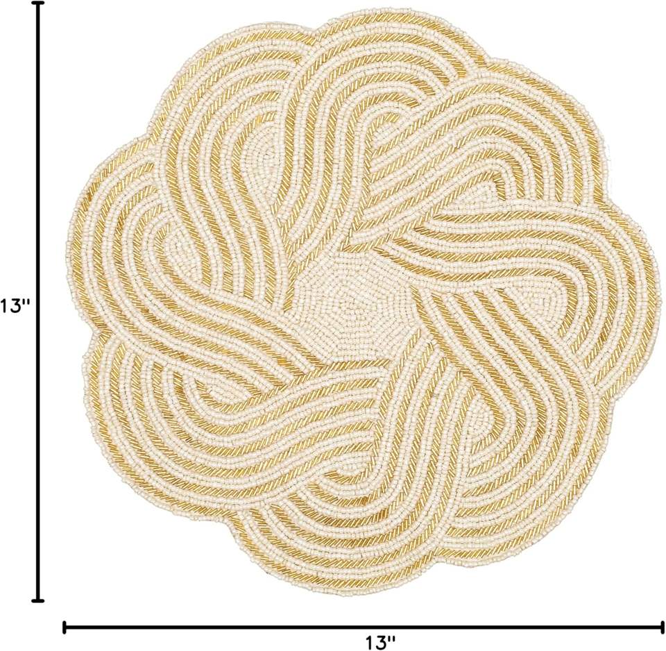 Floral Designs Indian Handmade Beaded Glass Runner Mats Pads and Coasters for Wedding and Christmas Party Table Decor
