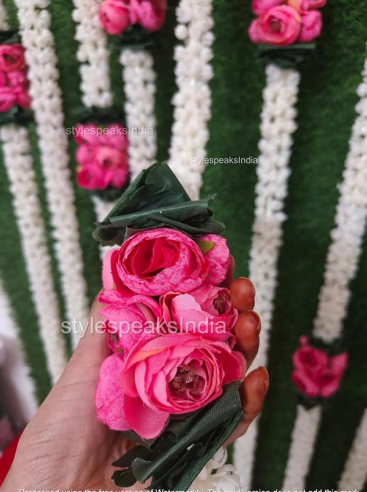 Color:White/off White, Pink Rose Bunch