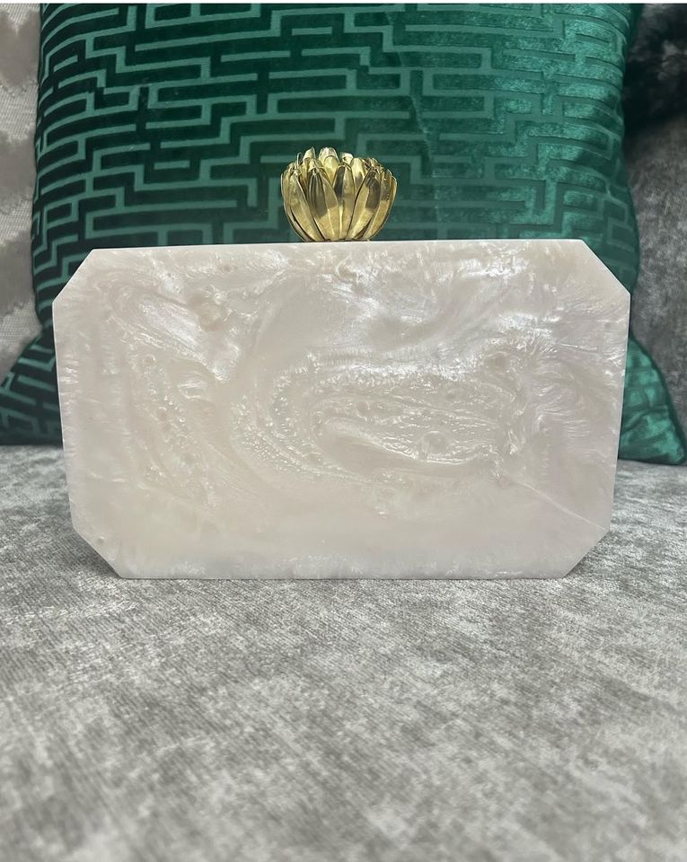 Floral Embellished Resin Clutch Bag Handcrafted Lotus Flower Clasp Designer Handbag Bridesmaid Gift with Comfort Chains Winter