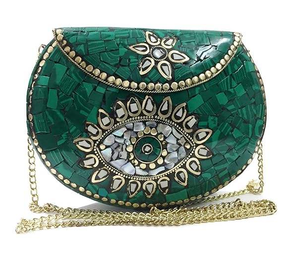 Floral Embellished Sequins Hand-Cut Metal Mosaic Clutch Wallet Women's Evening Party Bag for Weddings and Other Occasions