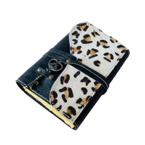 Floral Embossed Leopard Print Journal Softcover with Strap key Lock