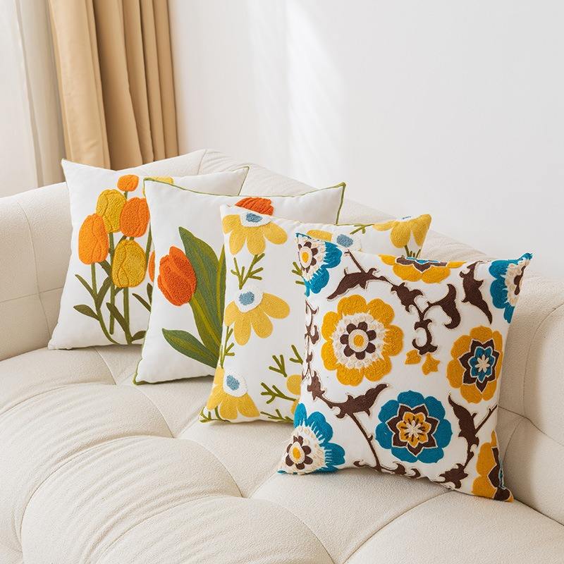 Floral Embroidered Cushion Cover 45x45cm Square Polyester Pillowcase For Living Room Home Decor