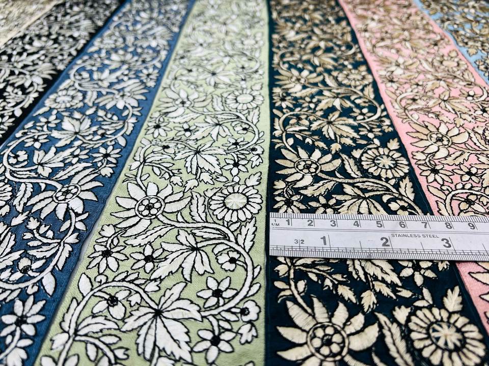 Romantic & Fancy Multicolor Ethnic Lace Trim Floral Embroidered Fabric Border Sarees Dresses Crafts Luxury Traditional Style