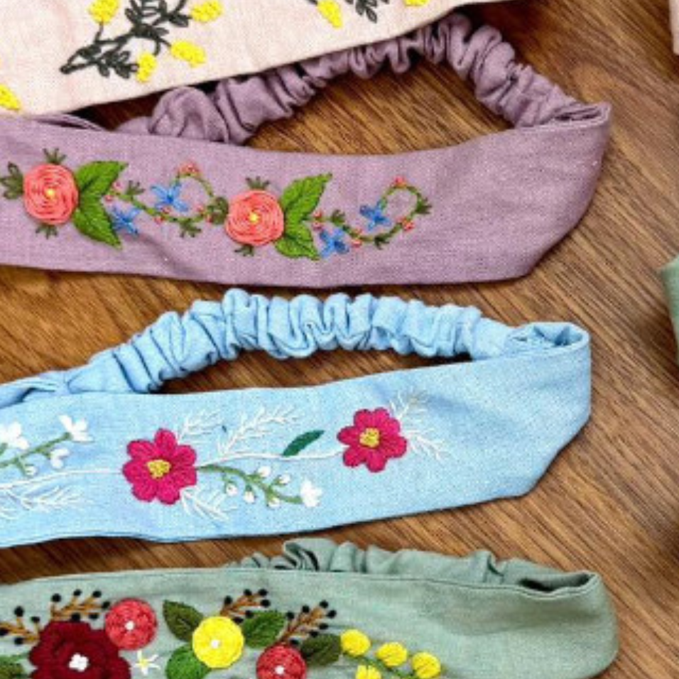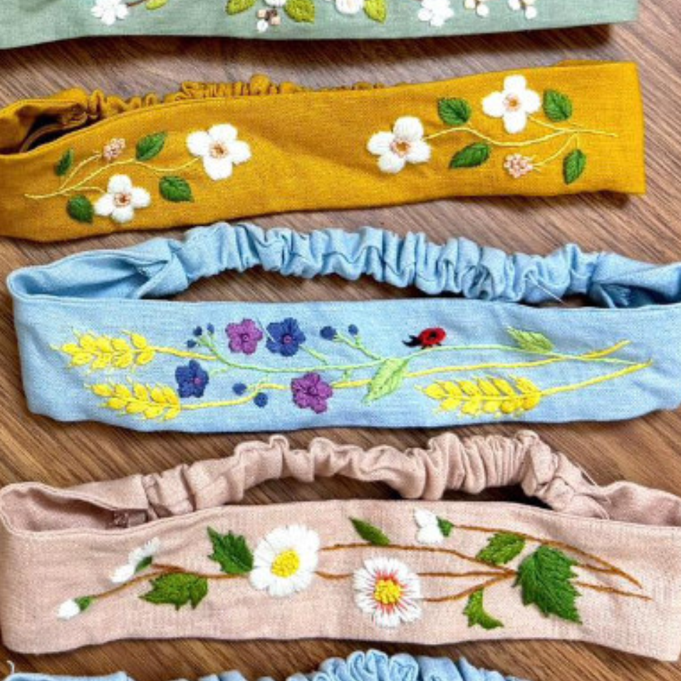 Floral Embroidered Headband Linen Turban Cute Flower Garden Embroidery Hairband Vintage Hair Accessories OEM Made in Vietnam